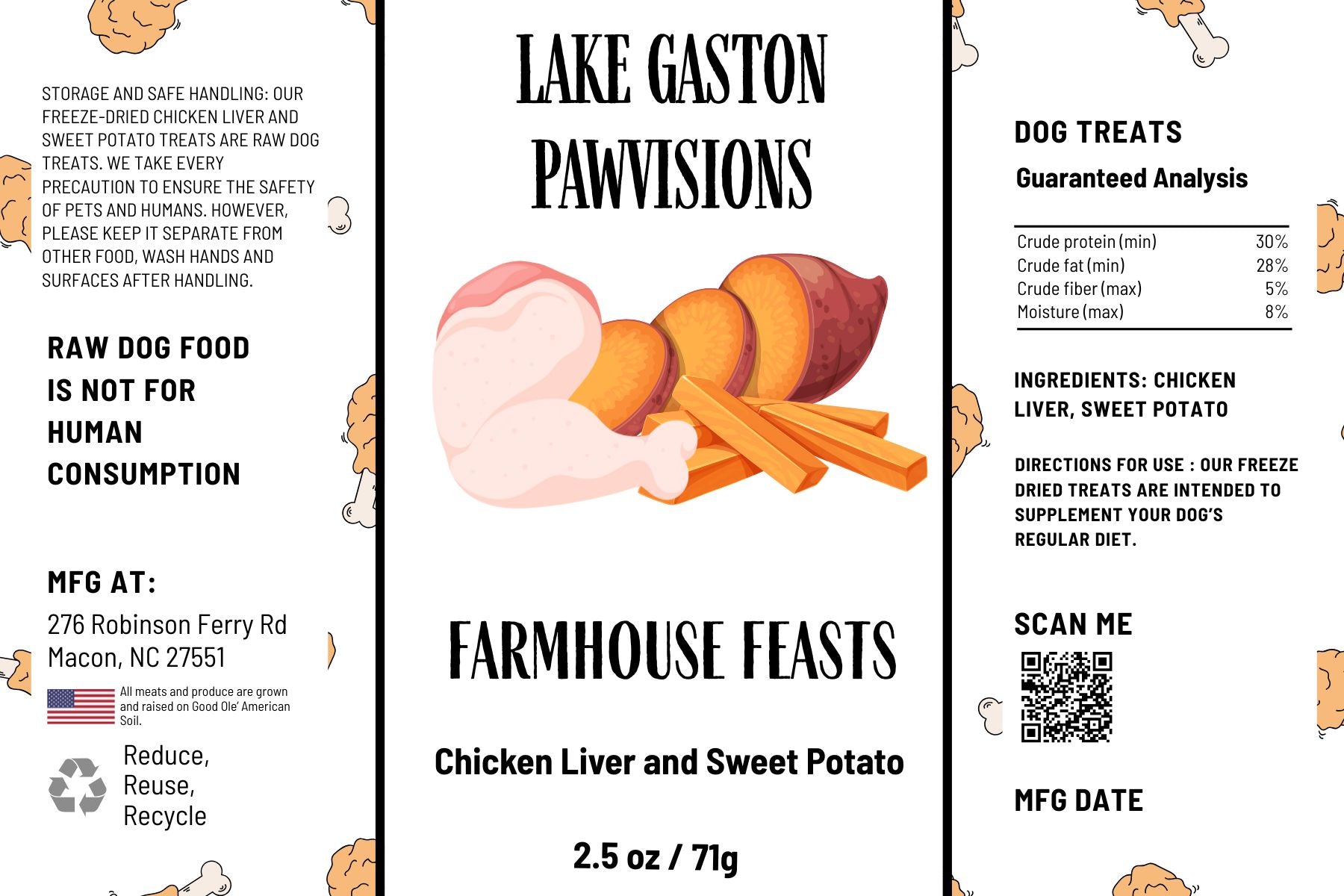 Straight from the farm to your furry friend, Farmhouse Feasts are wholesome freeze-dried treats made with nutrient-rich chicken liver and sweet potatoes grown right here in Warren County, North Carolina.